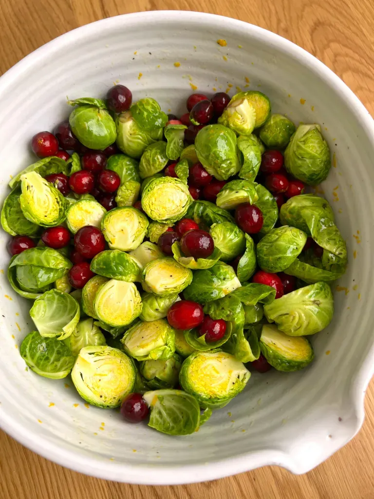 To serve, pile it on to a serving plate and garnish artfully with the hazelnuts, cranberries, parsley and drained onions.